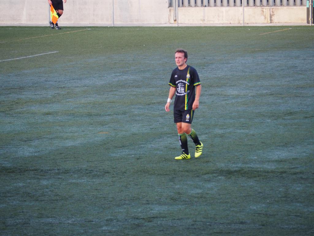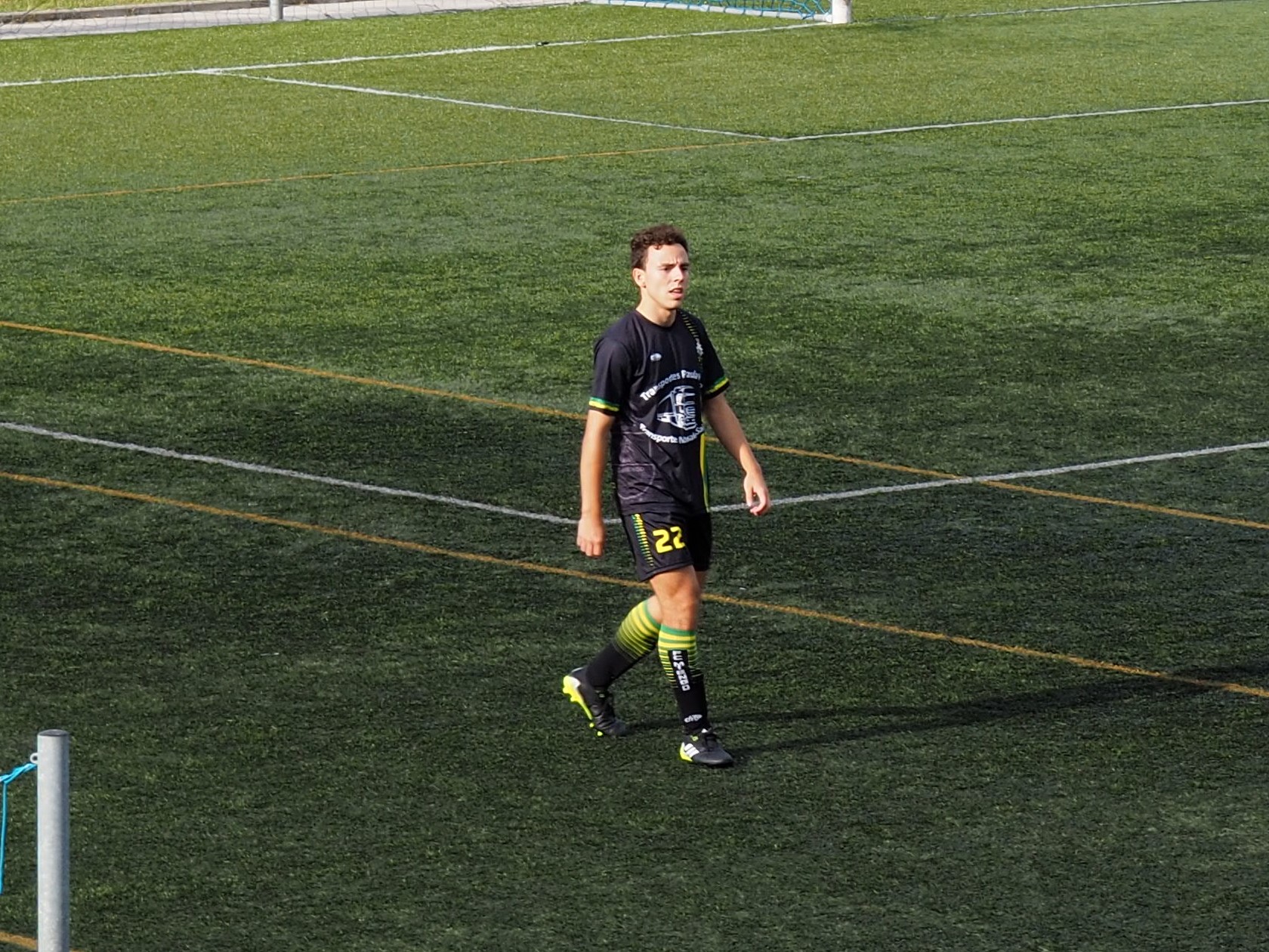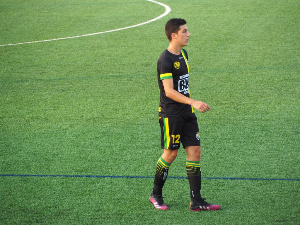 EQUIPACIÓN (COLOR) Camiseta negra con 2 franjas amarilla y verde. Pantalón negro . Medias negras.